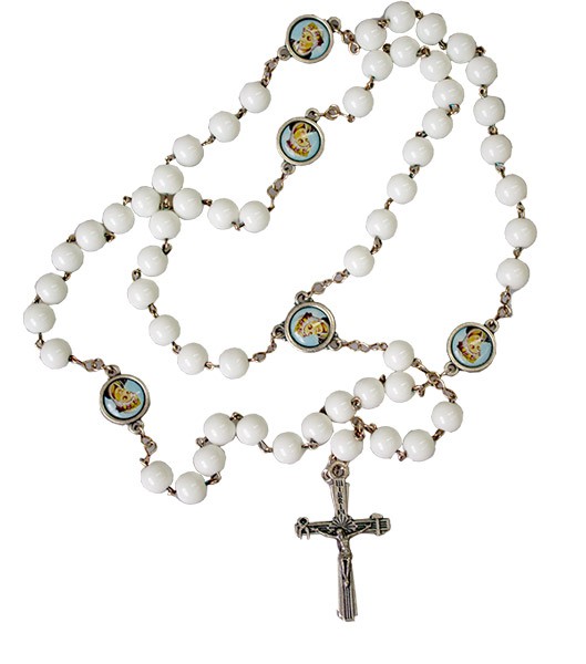 Terço Olho de Gato personalizado Nsra Salette Branco c/ medalhas